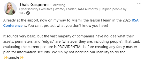 As Thais Gasperini, a respected Cybersecurity Executive and IAM authority, astutely noted in a recent social media post: ‘It sounds very basic, but the vast majority of companies have no idea what their assets, perimeters, and “edges” are.’ We couldn’t agree more with Thais’s observation.